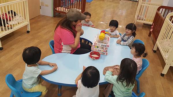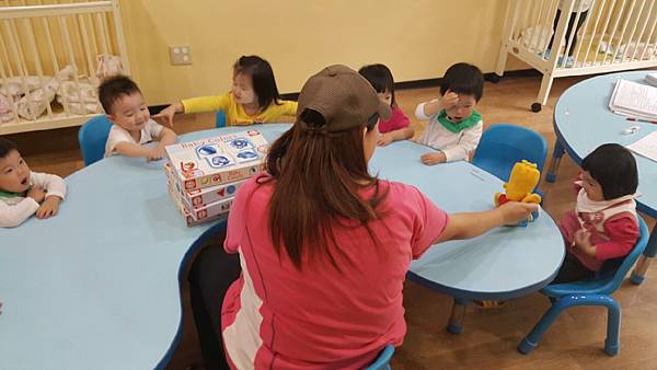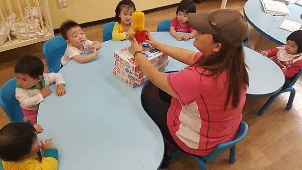 托嬰中心老師每天都會依照課程安排各種不同的故事與互動